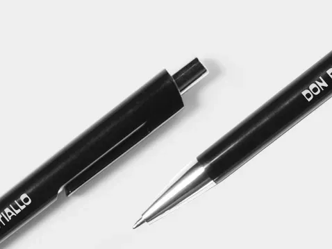 Šis funkcionalus plastikinis rašiklis su integruotu segtuku yra puikus pasirinkimas pigiems ir praktiškiems reklaminiams rašikliams. Jame galima pasirinkti iki 8 ryškių korpuso spalvų, o įmontuotas segtukas leidžia lengvai pritvirtinti prie užrašų knygelės, kalendoriaus ar portfelio. Dėl įstūmimo mechanizmo ir mėlynos spalvos papildymo patogu naudotis. Be to, 45 x 6 mm paviršius leidžia pritaikyti logotipą ar reklaminį šūkį nuo 1 iki 4 Pantone spalvų, užtikrinant patvarų spaudinį.