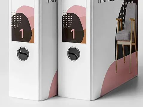 Dviejų stuburo pločių (63 mm ir 82 mm) svirties segtuvas F55 leidžia patogiai laikyti dokumentus. Jame yra įdėklas 350 arba 550 kortelių (80 g). Lipdukų ir galinių popierių spausdinimas gali būti vienodas (4/0) arba dvipusis (4/4), taip pat galima rinktis iš folijos tobulinimo (blizgus, matinis, švelnus prisilietimas) ir selektyvaus UV lako. Be to, yra praktinių priedų, tokių kaip kišenės vizitinėms kortelėms, kompaktinis diskas ir žiedas.